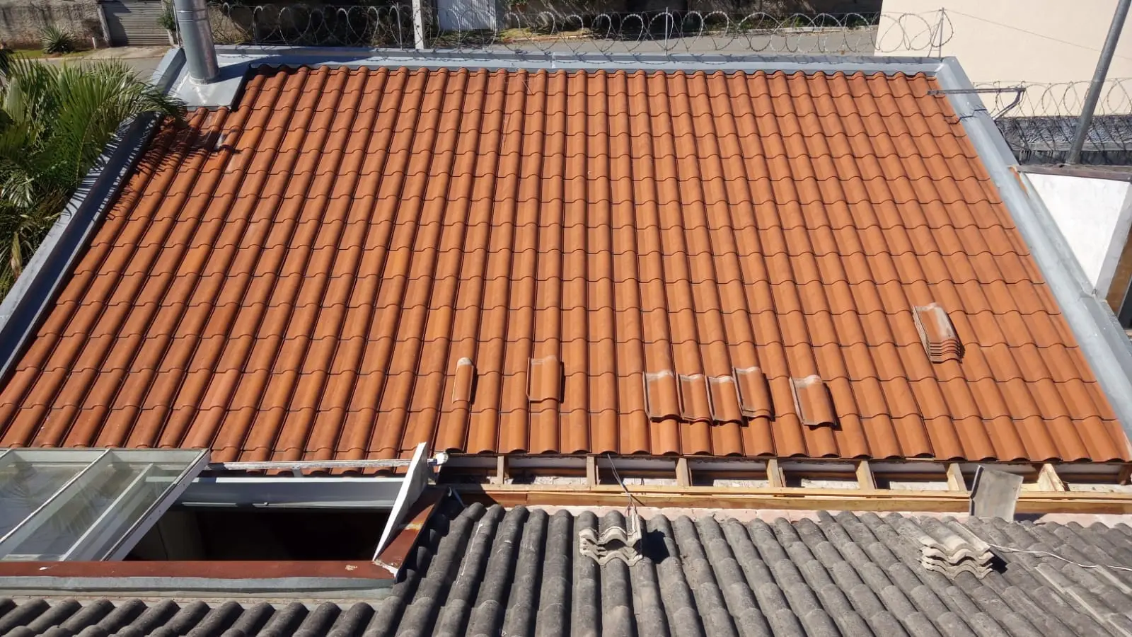 Impermeabilização de lajes, telhados e paredes externas: Aplicação de mantas e produtos impermeabilizantes para evitar infiltrações. Reparos em telhados e calhas: Troca de telhas, reparo de vazamentos em telhados, limpeza e substituição de calhas.